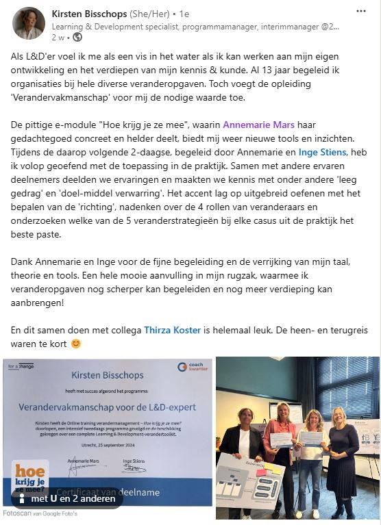 De online training Hoe krijg je ze mee? is een diepte investering in verandervakmanschap.